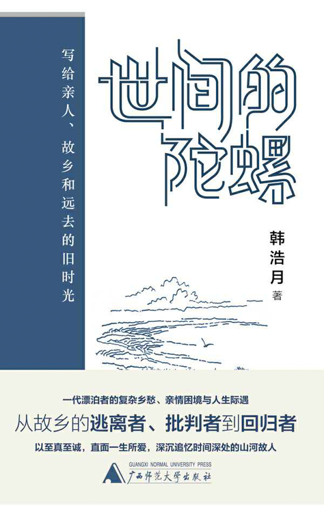 在《世间的陀螺》中,韩浩月像所有从乡村来到城市打拼的小人物,从一个家乡的出走者、背叛者,渐渐变成了一个回归者,在寻找新生活定位的同时,也在不停地寻找故乡。曾经的那些朋友、亲人和往事,成为不断追忆的山河故人。