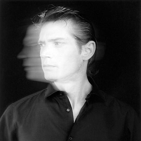 三、“霍乱”时期的遗照1985年,梅普尔索普给自己拍摄了两张自拍像:一张头顶戴角,少有的使用底光拍出了狰狞的面目,眼神凄厉,仿佛恶魔附身般变了一个人;另一张采用慢速快门和闪光灯拍摄:转头的瞬间,眼神忧郁,发际稀疏,已显老态……第二年,他检查出感染艾滋病毒。