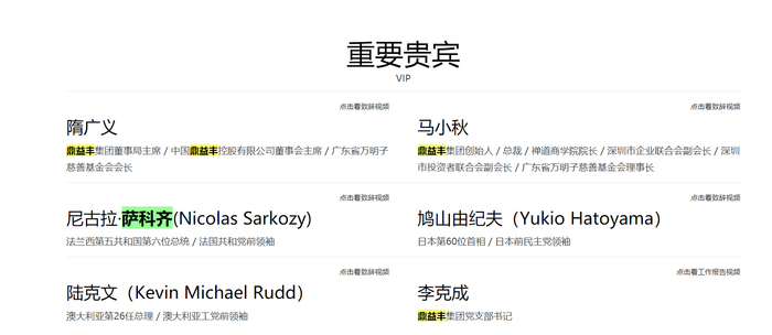 而在对外宣传上,鼎益丰也非常高调,根据其官网曾经的记录显示,该公司在2018年举办了全球盛典,邀请了法国前总统萨科齐,澳大利亚总理陆克文,日本前首相鸠山由纪夫出席,不过目前上述信息已经删除。