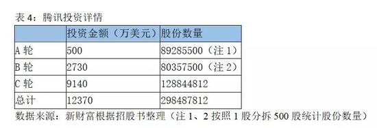 具体投资金额,于2014年10月31日,腾讯、经纬创投和红杉资本分别出资500万美元、200万美元和150万美元,腾讯获得178571股A系列优先股,经纬创投71429股A系列优先股,红杉资本46875股A-1系列优先股。