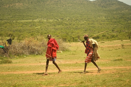 在东非草原上,有最著名的原住民——马赛人。他们是传统的游牧部落,近年来政府鼓励他们定居从事农业生产,已有一部分人转为半农半牧。但他们还是会随身带一根圆木、长矛和佩刀,用于防身、赶牛。