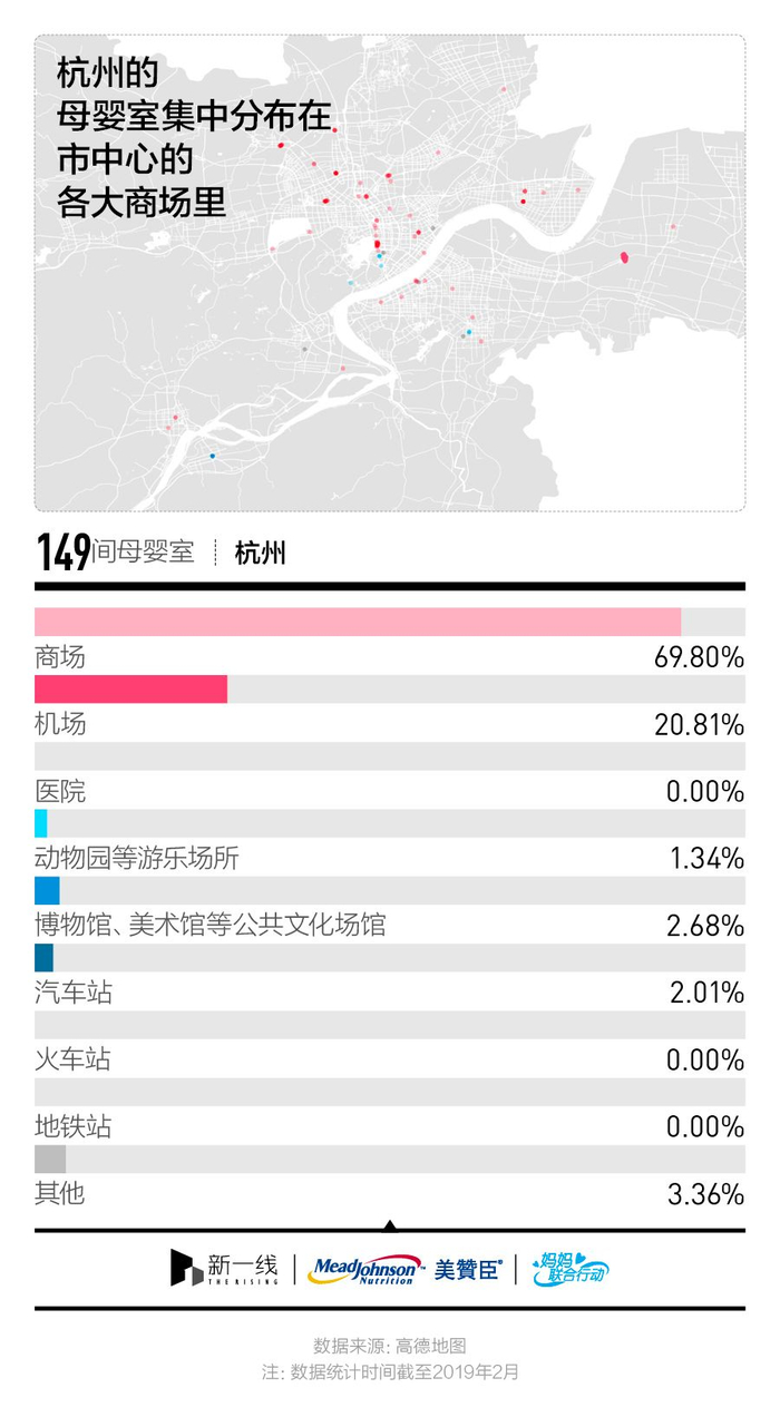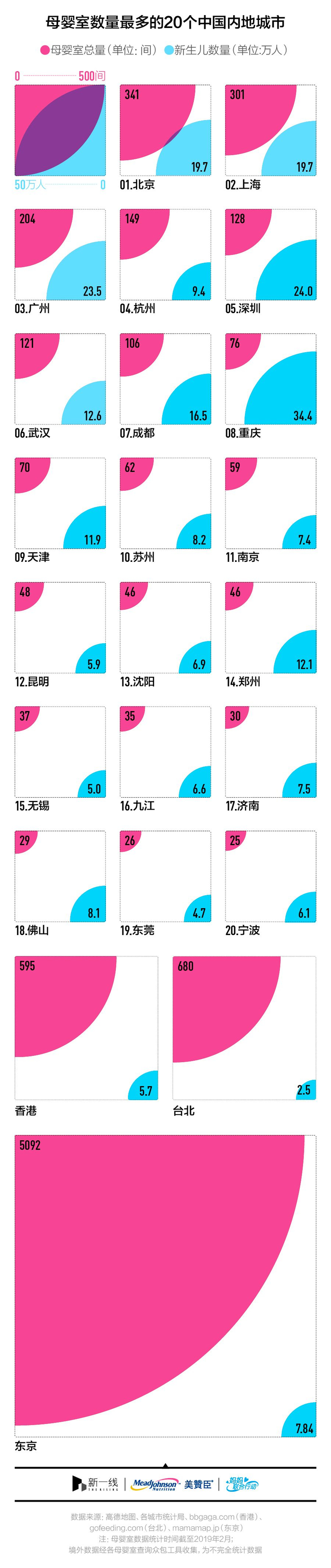 与此相对比的,据不完全统计,中国香港目前共有595间母婴室,平均298个家庭共享1间母婴室;中国台北的母婴室数量达到了680间,每间母婴室只需要118个家庭共享——这个数字约为中国内地城市的1/19。东京23区的母婴室数量达到了5092间,供应量已基本达到理想水平,平均1间母婴室只需要供47个家庭共享。