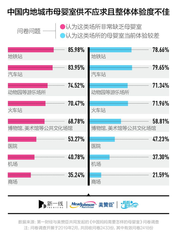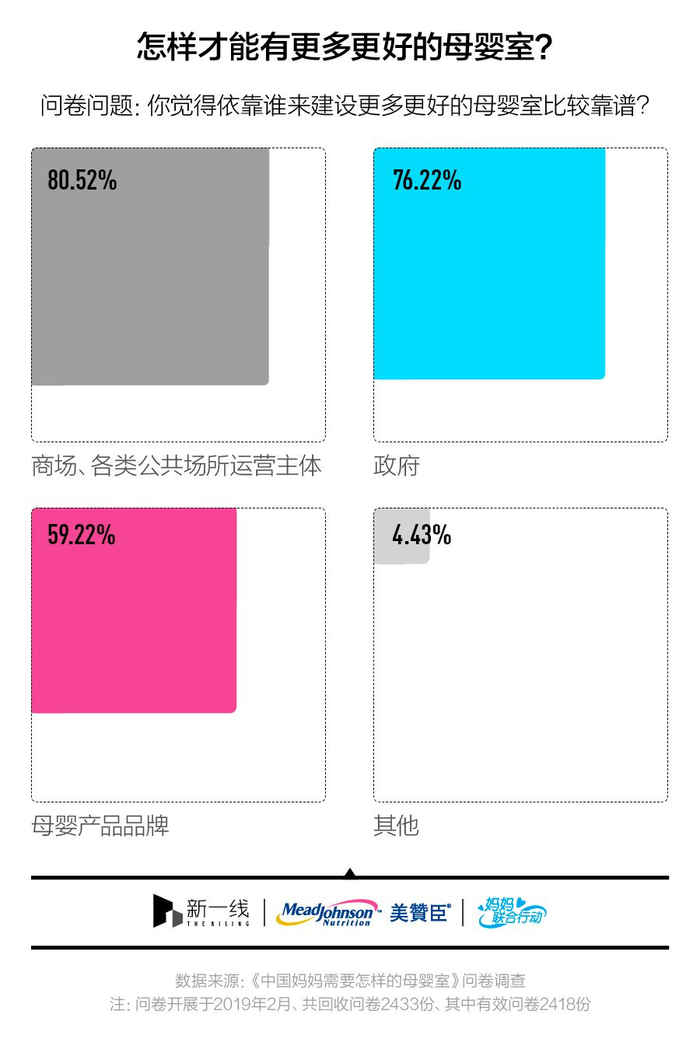 2019年2月,第一财经与美赞臣共同发起了一次主题为《中国妈妈需要怎样的母婴室》问卷调查,共计回收了2433份问卷,其中有效问卷为2418份。