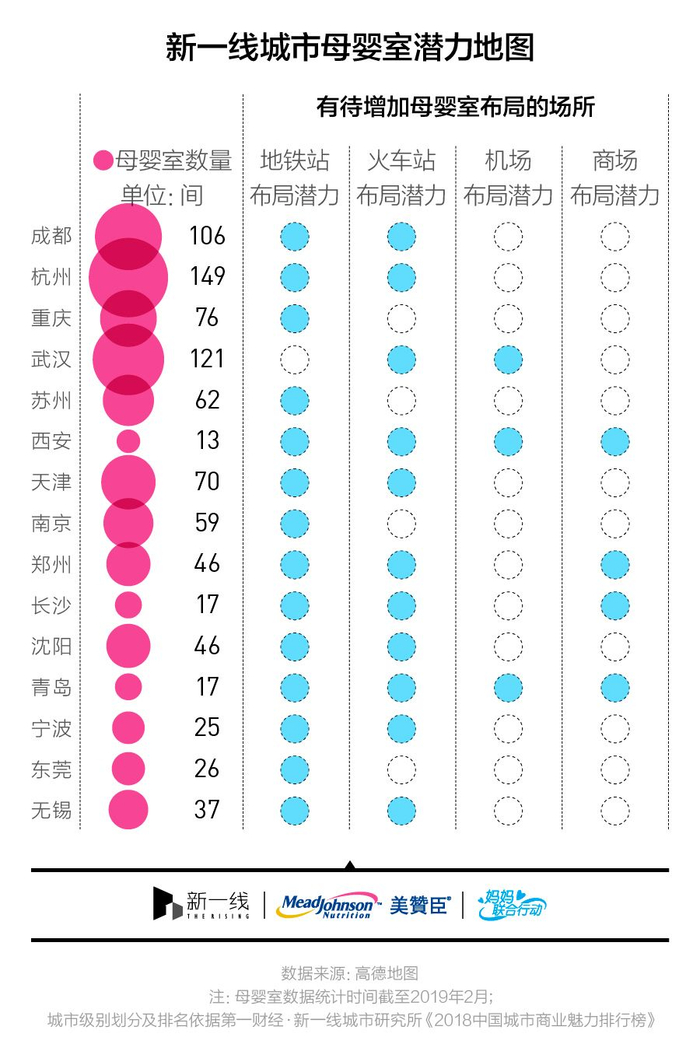 根据第一财经·新一线城市研究所在高德地图上收集整理的“母婴室”位置信息,中国内地所有城市总计拥有的母婴室数量仅为2643间,其中只有7座城市拥有超过100间母婴室。