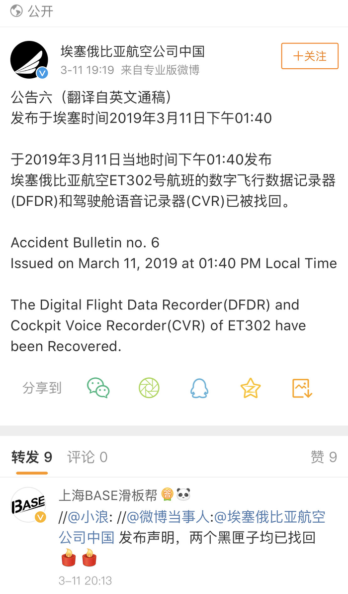 中国民用航空局今日发布通知称,这是继去年10月29日印尼狮航空难事故之后,波音737-8发生的第二起空难,鉴于两起空难均为新交付不久的波音737-8飞机,且均发生在起飞阶段,具有一定的相似性,本着对安全隐患零容忍、严控安全风险的管理原则,为确保中国民航飞行安全,要求国内运输航空公司于2019年3月11日18时前暂停737-8飞机的商业运行。