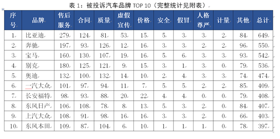 去年被投诉汽车品牌比亚迪居首 奔驰、宝马、奥迪进前十