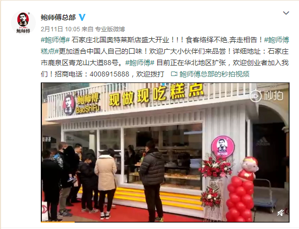 官方信息显示,易尚公司自2017年4月启动加盟,在全国238个城市开放区域代理单店(加盟店)。截至2018年10月,其“鲍师傅”合作门店已增至400余家。而一直采用直营模式的鲍才胜公司目前仅有35家门店。