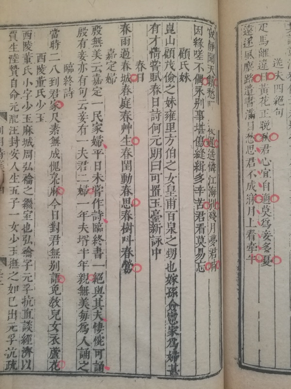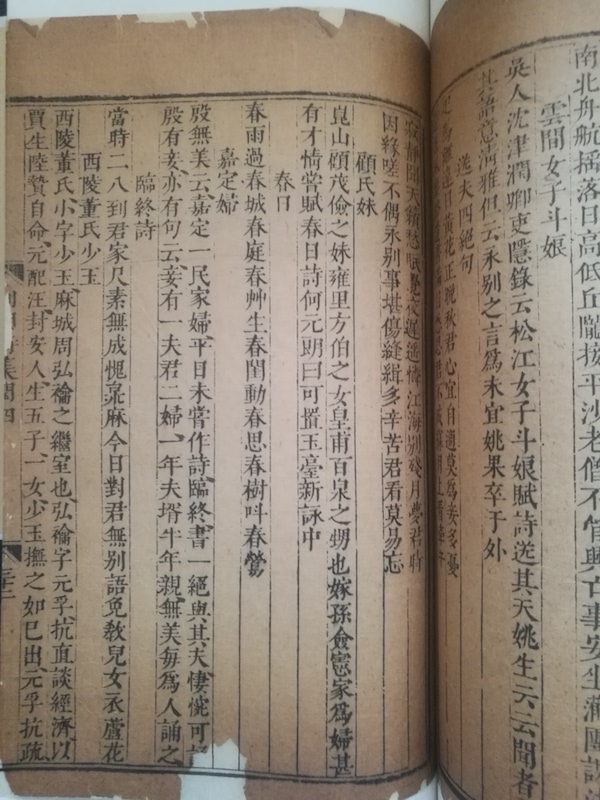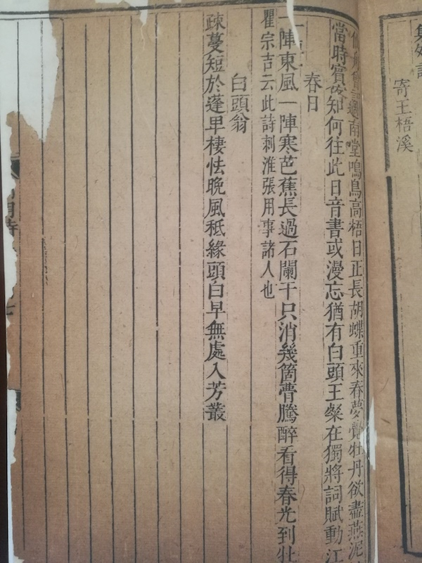 从印工看,两本差别一目了然。初印本墨色更深,栏线也比较完整。这里仅举一例:闰集第五卷二十七页,“题宣和画石榴”和“题松雪画马”两首,后印本末一字均已不可识别,查初印本,此处则清晰可见,分别是“秋光”和“的卢”。