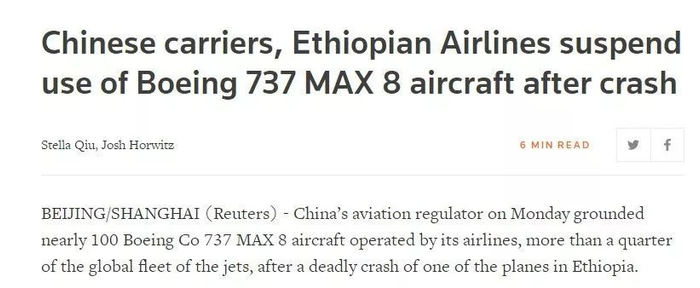 昨天下午,中国民航局发出通知,为确保中国民航飞行安全,要求国内运输航空公司于2019年3月11日18时前暂停波音737-8飞机的商业运行。