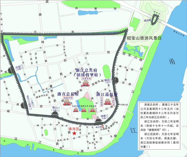 终明一代,南倭北虏即东南沿海一带倭寇的侵扰和北部边境蒙古的袭扰,是长期困扰明朝的两大问题。明廷规定,宁波是日本朝贡船登陆中国的唯一口岸。日本人的朝贡船来华要先在镇海入关接受检查,再经水路抵达府城上岸,然后通过大运河去京城。不但如此,镇海作为我国古代唯一一个与大运河相通的不冻港,也是东亚、东南亚各国来朝贡的第一站;历史上还是遣唐使、遣宋使的第一站。我国最早的日本专著、镇海人薛俊所编的《日本考略》明言了镇海的地位:“凡贡献必由于定(海),次于宁(波)郡(城),以及杭(州)省(城),然达于京师。故定为喉舌所也。”明嘉靖年间的镇海城是节制东南七省(山东、南直隶、浙江、福建、江西、广东、广西)地方最高文官浙直总督驻地之一、管辖东南沿海六省(山东、南直隶、浙江、福建、广东、广西)兵马地方最高武官浙直总兵的驻地。然而,随着时间的流逝,镇海在明朝海防史上的重要地位,却被人们所逐渐淡忘了。