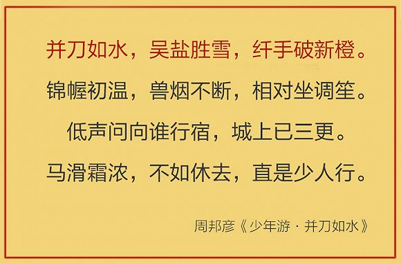 一首写歌女的小黄词,竟然从切橙子开头。“纤手破新橙”,既有女性的美态,又有汁水四溢的画面,入口清甜的想象...