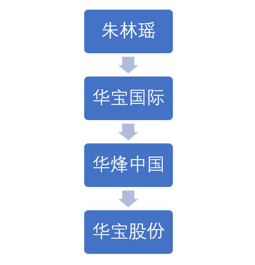简单来说,朱林瑶间接持有华宝国际73.60%的股份,华宝国际又持有华烽中国100%的股份,华烽中国又持有华宝股份81.1%的股份,朱林瑶就是华宝股份的实际控制人。