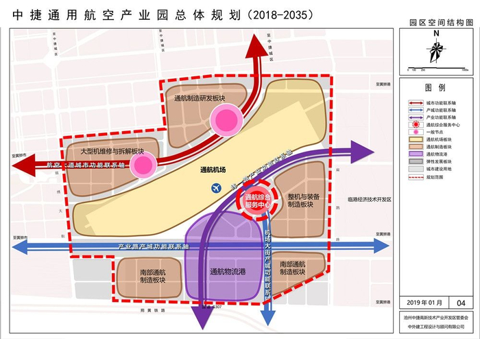 七板块:通航机场核心区、通航物流港、大型机维修与拆解板块、北部通航制造研发板块、整机与装备制造板块、南部两个通航制造板块。