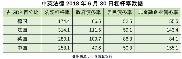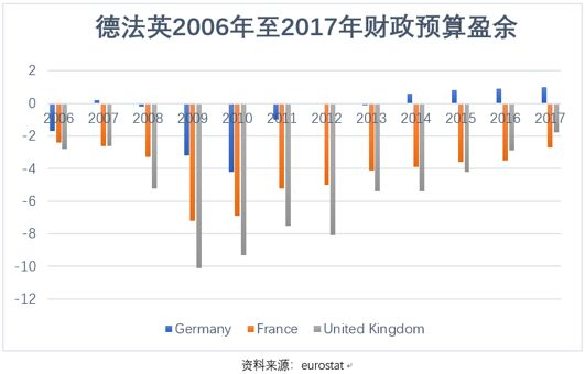 德国在债务控制上一直非常出众,各部门的杠杆率都大幅低于英法两国。根据世界清算银行的数据,2018年6月30日德国的宏观杠杆率仅有174.4%,其中政府杠杆率仅有66.5%,非金融企业杠杆率更低至55.5%,远低于欧洲另外两个动力火车头——英国和法国的水平。如果按国内惯常的保增长思维,加杠杆的余地是大大的。