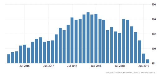 其三、商业信心指数也呈现加速下行的趋势,在2019年2月仅录得98.5,创下3年来的新低。