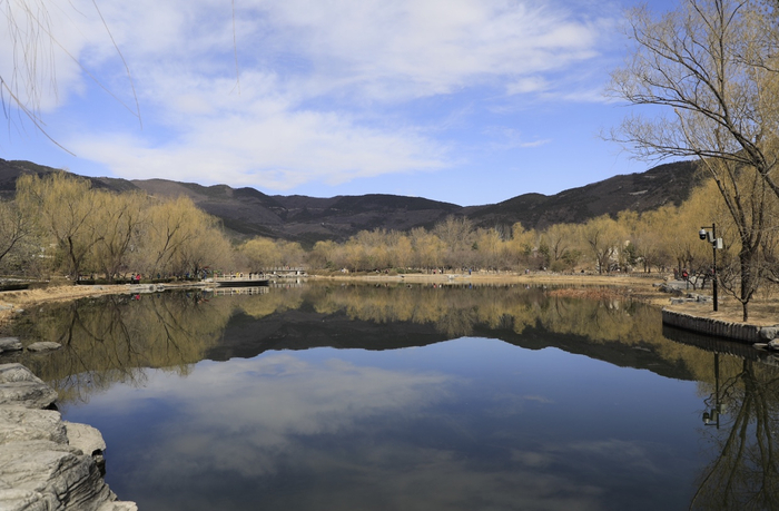 北京植物园,湖边垂柳绦绦,不日,山桃花就将绽放成溪。 北京市公园管理中心供图