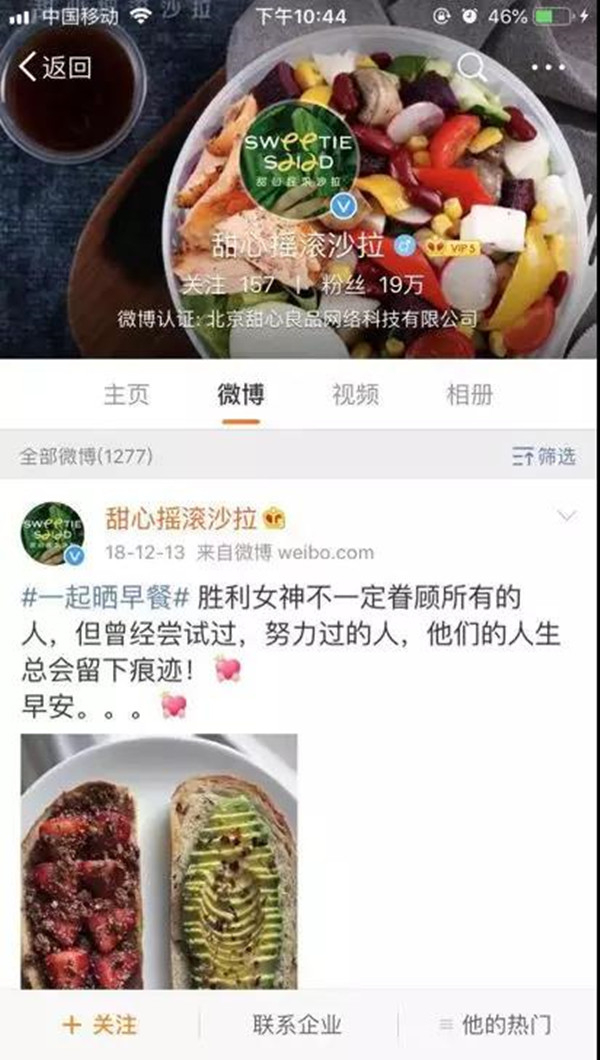 3月初,有媒体报道称,成立于2014年7月、主要依托于外卖渠道的甜心摇滚沙拉主营业务陷入停摆状态,管理层失联。根据消息人士透露,危机的触发点可能与管理层涉嫌做假账、挪用公司大额资金有关。目前,其官方微博的最后一条更新停留在2018年12月13日,而微信公众号已经被注销——之前,微信公众号曾是用户预订沙拉的重要入口之一。