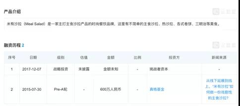 2015年前后,伴随着健身行业的兴起与消费者健康饮食理念的提升,一批沙拉品牌在资本的加持下开启高举高打的运营模式,但它们的融资状态也大多定格在了2017年。