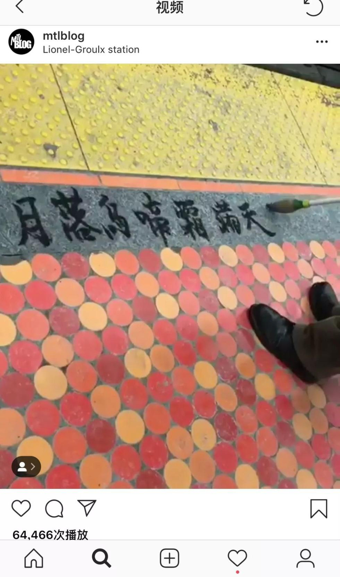 MTL Blog是这样说的:你可能还记得我们几周前报道了一个中国男子在Lionel-Groulx地铁站用水写中国诗的事儿。