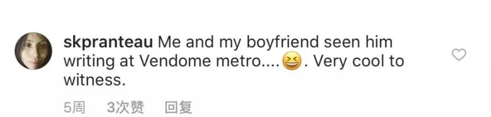 “我和我男票在vendome地铁站也看到他了!见证这个非常酷”