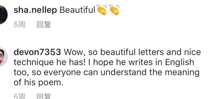 其实,不少外国网友都没有控过他们对中国诗词的喜爱,