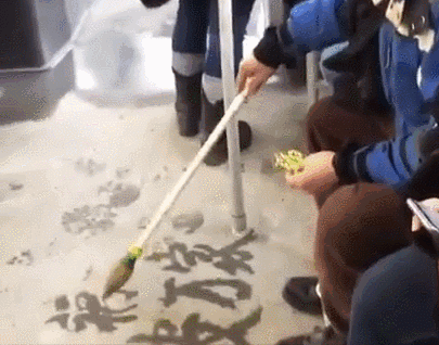 有的网友不了解大爷的创作方式,指责这位老大爷写字破坏了地铁环境。不过,立即有网友做出了解释:他是用水写的,一会儿就干了!