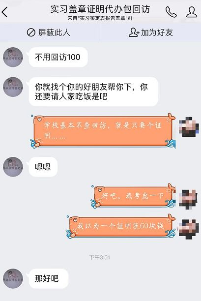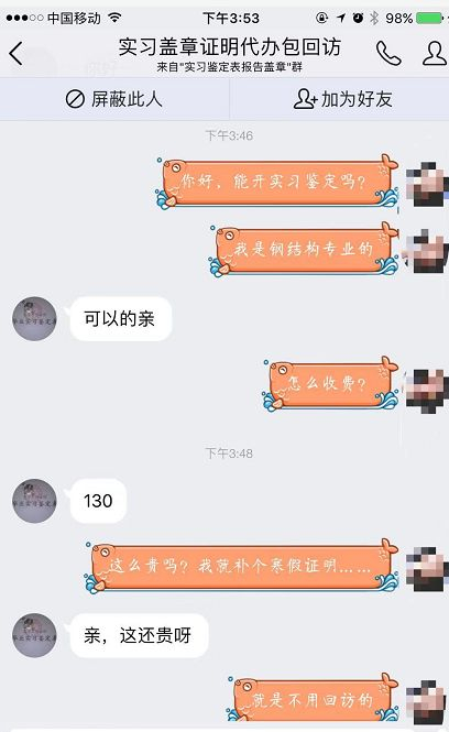 @庸人自扰之:朋友圈都有人出售各种公司的实习鉴定、报告,这种东西都是通过网上在进行交易,真的要好好管管……