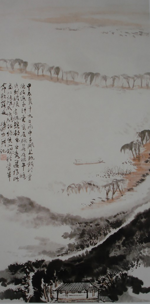 黄宾虹先生的作品《栖霞岭下晓望》,我们现在都能走到栖霞岭下看看,揣摩一下宾翁是站在什么地方晓望西湖。包括这张《栖霞岭旧有桃花溪》,早先杭州有很多小溪流入西湖或流入西溪。又如《西泠桥上》,这张画面的远处是什么?是现实西湖的远处吗?黄宾虹先生处理这些画面的理由是什么?中国画写意的教育,像黄宾虹先生这样儒家文化教育出来的旧学人,对这个世界的理解与后面“五四”后生存环境中的艺术家有什么不一样?他面对西湖想表达什么?实际上不是在画对象西湖,是借西湖画自己内心中的中国画。真正用像不像对象来衡定中国画得好坏,是西方式教育进入中国后的一个结果。宋元绘画,特别宋以前绘画与对象的关系是怎么样的值得进一步研究。康有为那个年代,为了引进西方的写实系统,动不动就说我们要学西方的写实来对接宋以前的辉煌,西方写实引进已经一百多年,实际上也没有对接到一块。中国人从孔夫子开始,就有从更早的传统里去寻找当下存在的理由之习惯。