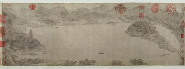讲二十世纪中国画家画西湖,先从一张南宋李嵩的《西湖图》,这张经典作品告诉我们西湖的山山水水,从南宋到现在的变化之小。