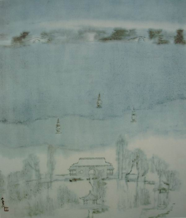 《一湖寒玉》是画西湖最好的作品之一,就是那种感觉的好,把西湖美到深处的寒切画出来了,却讲不出来!还有《西湖雪晴》等,童老师又给了我们一个属于他的西湖,我们琢磨琢磨童中焘先生为什么在寻找西湖的壮美,而不是常人看到的秀美。