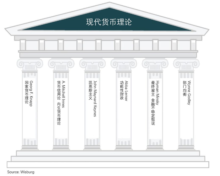 现代货币理论大致诞生于上世纪90年代,虽然名字里有“现代”两字,但其理论根源或者说思想“先父”们最早可以追溯至一百多年前。根据MMT领头人之一 Randall Wray 的自白:“[MMT]是几股异端学说的综合——主要是后凯恩斯主义思想。它在很大程度上借鉴了Georg F. Knapp、A. Mitchell Innes、John Maynard Keynes、Abba Lerner、Hyman Minsky 和 Wynne Godley 的成果,整合了国家货币理论,内生货币,功能性财政,金融不稳定假说和部门均衡法。可以这样说,这个理论站在了巨人的肩膀上”。