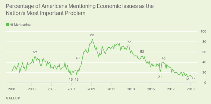 这场争论的背景无疑是美国联邦债务突破22万亿美元,债务上限问题重燃,学术圈对政府债务的可持续性产生了忧虑。而MMT对政府债务的主要见解就是:政府不应该被财政平衡束缚了手脚,而应发挥“功能性财政”的作用。一些人据此判定MMT认为财政赤字根本不重要,政府应该直接“印钱”刺激经济 (显然片面)。但理论的纷争之所以能冲出象牙塔,得到铺天盖地的大讨论,主要还是因为政治,毕竟大众对经济问题和债务上限并不上心 (下图)。