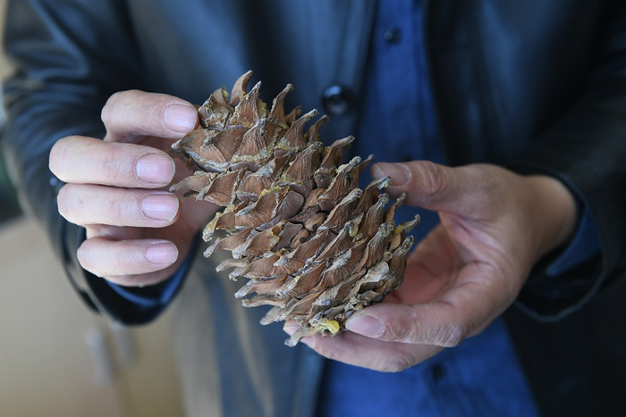 一颗松果蕴含着家乡的秘密。新京报记者 王颖 摄