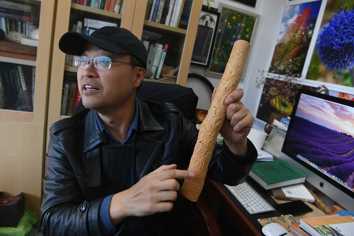 其实,即便不谈重要性,博物学本身,就能带给人太多的乐趣,刘华杰拿起一段布满云纹的树枝说,“这是一段侧柏的树枝,我捡回来的,随后放在桌子上,有一天忽然听到屋里有咯吱咯吱的声音,不知道从哪儿来的,后来才发现,是从这段树枝里传出来的,剥了树皮才发现里面有一只小虫子,很小,肉乎乎的,在啃树皮下面的木质部分,清理干净后,发现它啃过的地方,就像天然形成的云纹,特别漂亮”。