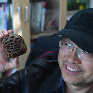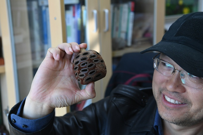 刘华杰的办公室,更像一个小小的植物标本间:一段黄香楝树的树枝,来自缅甸,那里人认为它可以驱虫、护肤,女性会用它的粉末擦脸;一截胡椒的根,可以直接当胡椒用,磨成粉就可以进锅;一颗非洲带回来的山龙眼种子,被打磨成一个香水瓶……