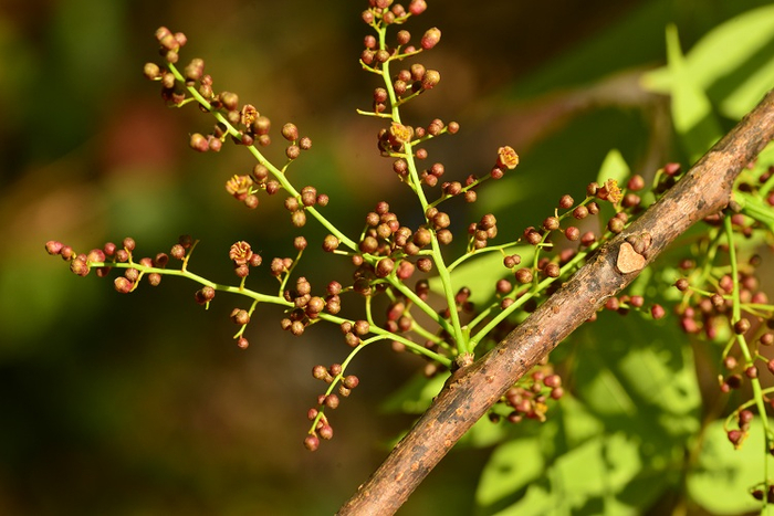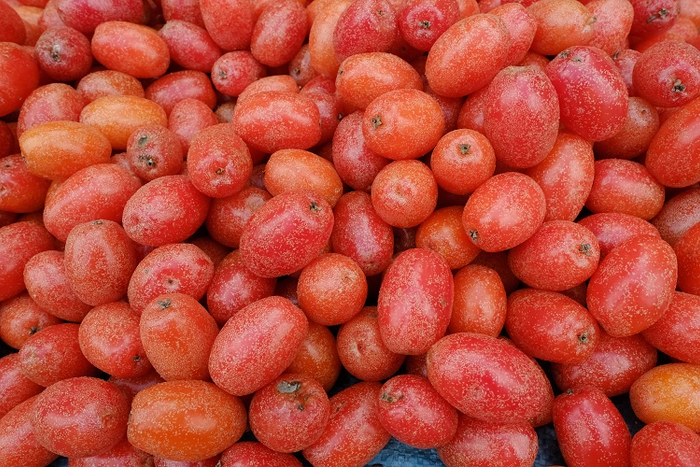 在勐往乡早市,刘华杰遇到了一种新的野果——密花胡颓子,其变种为勐海胡颓子。这类植物现已普遍栽培,其果实以前也品尝过,感觉味道不好,现在才知道那是因为没有完全成熟。此时熟透了,看着非常漂亮,红色果皮上有小白点,酸甜可口,但不宜多食。“这种果实还有一种吃法:加白糖和油炸辣椒面当菜吃,绝对值得一尝。”