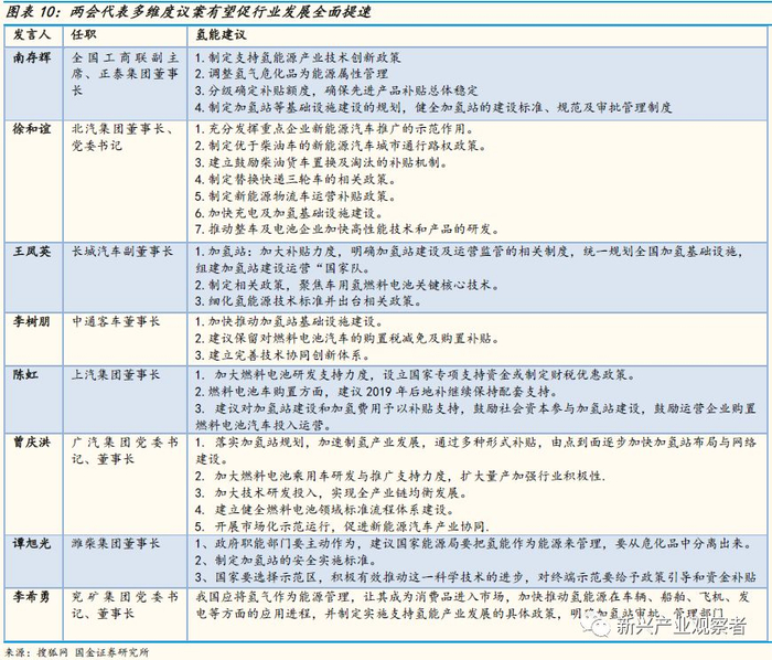 加氢站缺乏现状引起产业界关注,2019年两会期间,众多能源巨头和车企和高管均有推动加氢站建设建议,主要包括:(1)制定加氢站等基础设施规划;(2)健全加氢站建设、规范和审批制度;(3)加大加氢站补贴力度。