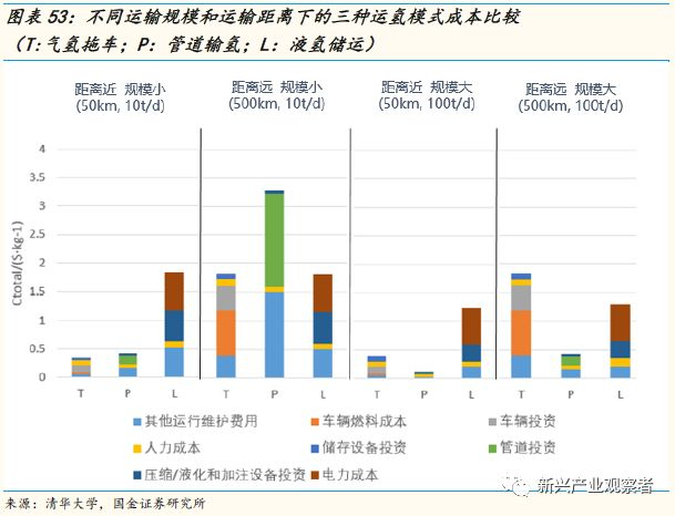 1)对于气氢拖车运输方式,主要受距离因素影响,规模对运氢成本影响比例较小;