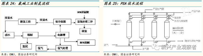 氯碱制氢工艺成本适中,在1.3~1.5元/Nm3之间,且环保性能较好,生产的氢气纯度高,目前而言适用于大规模制取燃料电池所使用的氢气原料,也是可实现度最高的氢气来源。