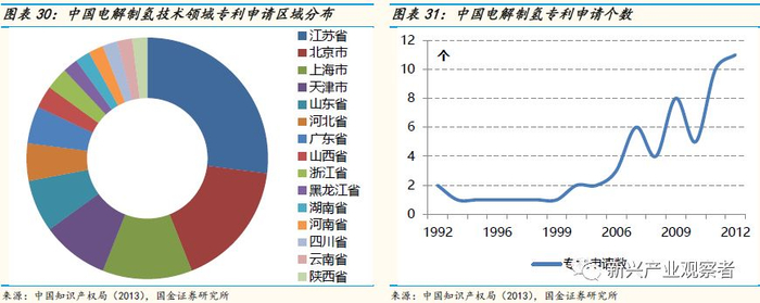 各国通过研发新型技术降低电解过程中的能耗,但是根据热力学原理,电解水制备1m3氢气和0.5m3氧气的最低电耗为2.95度电。由此可知,该途径降低成本的空间有限、技术复杂。