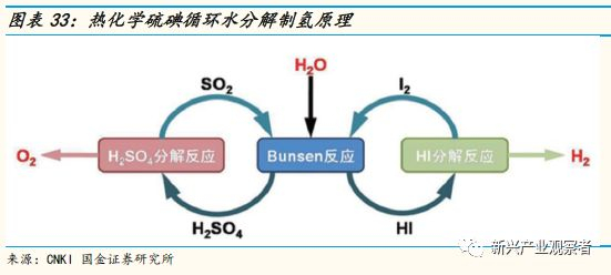 热化学循环水分解制氢可耦合核能、太阳能甚至是工业废热进行高效制氢,每一步反应条件温和,理论上不会排放任何污染物;若能在高温耐腐蚀材料等方面实现突破,将是最有希望实现工业化规模应用的技术方式。根据循环过程中使用过的不同物质,一般将热化学循环水分解制氢分成4大类:金属氧化物体系、金属卤化物体系、含硫体系以及电解-热化学联合的杂化体系。