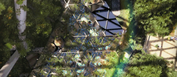 在五层楼高的垂直绿化带之间是森林谷
