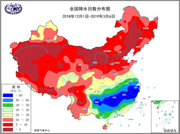 过去3个多月,江淮南部、江汉、江南、华南大部及贵州等地降水日数普遍有30至60天,30天以上的国土面积接近149万平方公里,占全国面积的15.5%。在浙江中南部、江西中部、福建北部和湖南南部,下雨天更是达到了60至80天,比往年多了20多天。多个省(自治区、直辖市)下雨天数占比超过50%。而在无雨的日子里,也多阴天或多云。受近期连阴雨和日照偏少的影响,今年我国南方部分地区的花开时间和花期可能比常年偏晚和缩短。