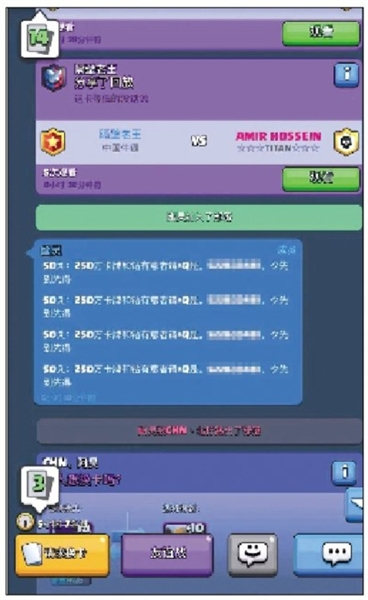 3月7日,记者在手游皇室战争的部落(即游戏内社交平台)内收到了一条内容为“充值50元送250万宝石加500史诗卡牌,即买即到,有意者加QQ”的广告。记者添加了这个名为“娜娜在线代充商”的QQ号后被告知,只要在其指定的游戏币充值网站“IC交易网”中注册网站会员,注册成功后,在网站的“皇室战争”充值页面进行付费充值即可获得广告中所说的游戏道具。