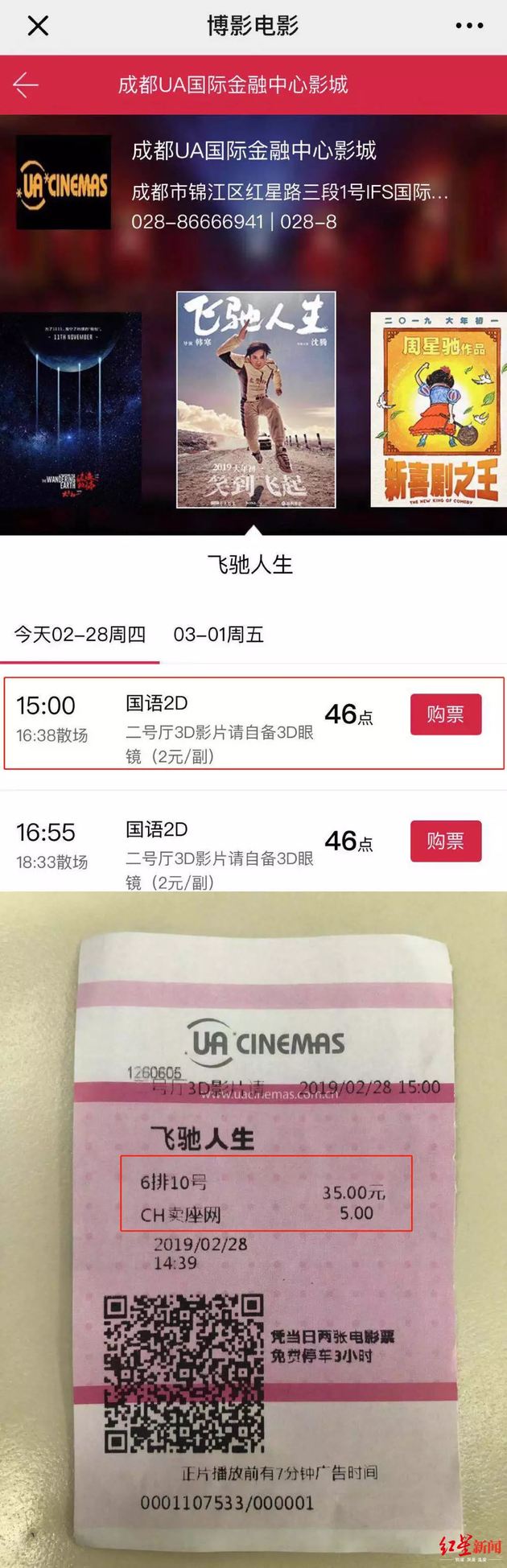 成都UME国际影城(成华店)离袁女士的家最近,在影院资源一览表中,该影院对应的卡折后价,2D最低20点,3D最低35点。以2月28日为例,该影院放映的所有电影、所有场次都没有达到最低优惠,3D最低46点,一部2D电影最低也是46点。