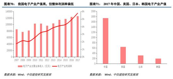 电子行业:中国电子行业产值位居全球第一,现阶段电子产业具备核心技术的部件主要仍靠进口,高额利润被国外厂商夺取,部分核心细分产业如集成电路设计处于国际分工下游,产品附加值偏低,与发达国家相比竞争力偏低。我国电子产业在一些技术核心领域与欧美发达国家相比仍然缺乏竞争力,核心技术领域仍需突破。