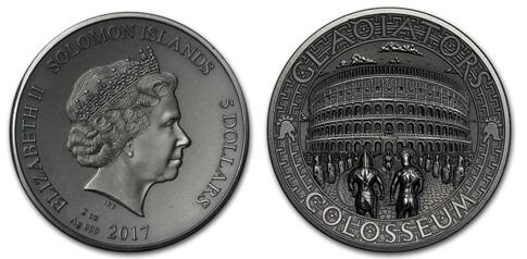 所罗门群岛2017年“角斗士:罗马斗兽场”仿古银币