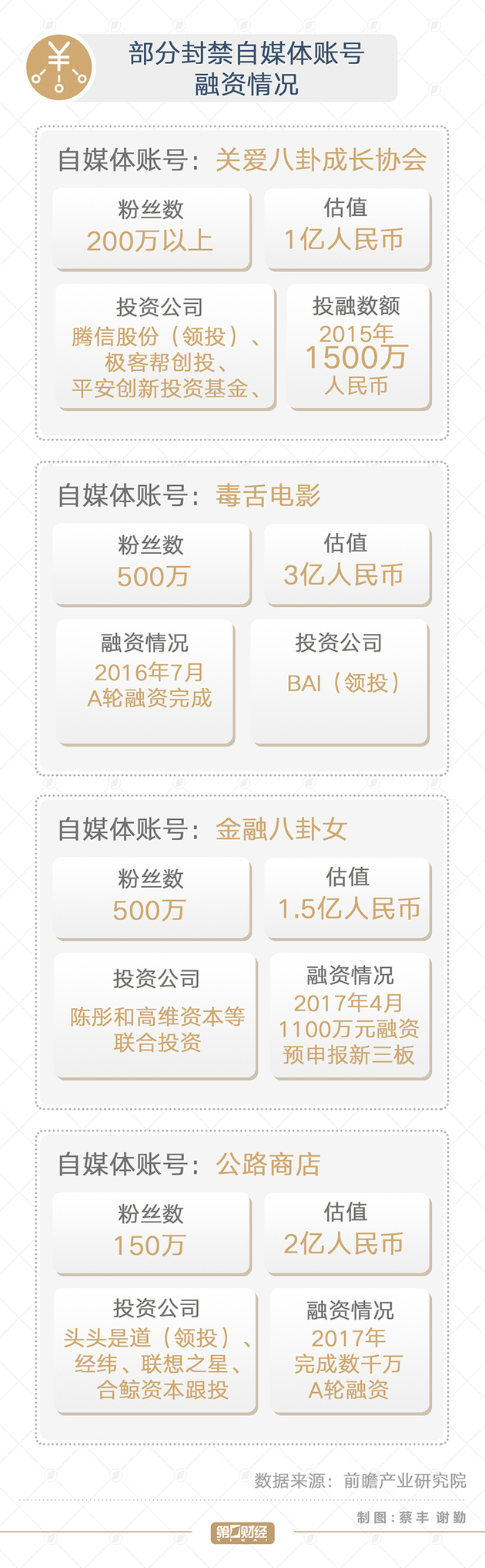 值得注意的是,这些被封账号中,不乏融资千万估值上亿的“大V”。他们损失的是上亿估值和百万粉丝,深陷其中的创投资本损失的则是“真金白银”。