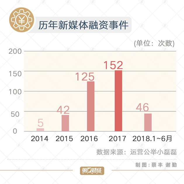 2016年,自媒体融资事件的数量比上2015增加了197.6%,资本开始强势进入自媒体。超过21亿的资金在业内发酵,估值过亿的超过10家;单笔融资金额过亿的就包括了同道大叔、开始吧等。到了2017年,内容创业者已累计获得了50亿元投资。
