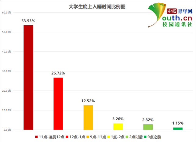 图为大学生晚上入睡时间比例图。中国青年网记者 李华锡 制图
